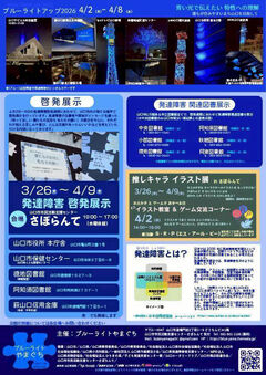 世界自閉症啓発デー(4月2日)、発達障害啓発週間(4月2日~4月9日)に因み、山口市内で関連イベントが開催されます